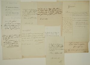 GÉNÉRAL COMTE FOY (Maximilien Sébastien) Ham (Somme) 1775 - Paris 1825 – Général en 1808, Comte de l’Empire, Député de l’Aisne. 11 Lettres, Billets et pièces à lui adressés de 1817 à 1824. In-8°, in-4° -