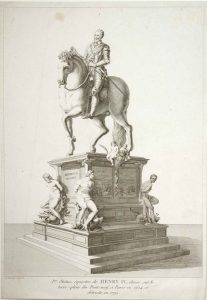 GRAVURE. PARIS. HENRI IV Roi de France - “1ère Statue Équestre de HENRY IV, élevée sur le terre-plein du PONT-NEUF, à PARIS en 1614, et détruite en 1792. - Impr. R.G. DUVIVIER, Del. et Sculp. 1818. Format (40 x 28) - État B