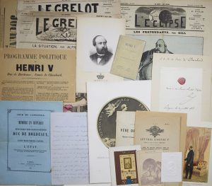 HENRI V. 31 Pièces concernant : CHAMBORD Henri Charles Ferdinand Marie Dieudonné D’ARTOIS, Duc De BORDEAUX, Comte De (Paris 1820-1883) fils posthume du Duc de BERRY, prétendant légitimiste au Trône de France :