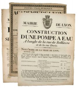 « MAIRIE DE LYON ». 1823 – 3 PLACARDS (53 x 42), imprimés à Lyon :