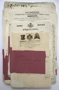 (FACTURES de PARIS) Archive du Vicomte de SANCY. Ensemble d’environ 85 factures et Mémoires, la plupart de 1829, concernant le train de vie du Vicomte de SANCY et l’entretien de son Hôtel particulier du 4 Rue de La Rochefoucauld – Quelques...