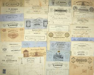 BORDEAUX (33) – EXCEPTIONNELLE COLLECTION DE 87 FACTURES de BORDEAUX de 1830 à 1920 – Toutes différentes, à voir, quelques belles illustrations :