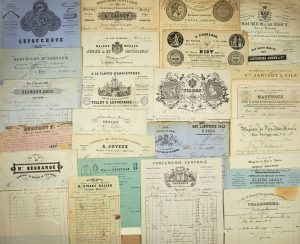 ─ TILMAN articles de Cour, parures de Bal, Fournisseur de S.M. l’Impératrice, 104 rue Richelieu Paris 1857─ CONSTANT PETITCOLIN et Cie Draperie en gros, 33 rue des Croix des petits Champs Paris 1858