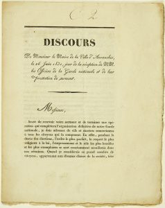 MANCHE - “Discours de M. le Maire de la Ville d’AVRANCHES, le 26 juin 1831, jour de la réception de MM. les Officiers de la Garde Nationale et de leur prestation de serment.” -