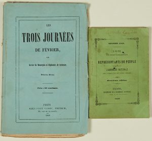 ─ « LISTE par ordre alphabétique des REPRÉSENTANTS DU PEUPLE composant l’Assemblée Nationale avec indication de leurs adresses. » - 2ème Édition. Impr. PARIS, de l’assemblée Nationale. 1848 ; 96pp in-16°.