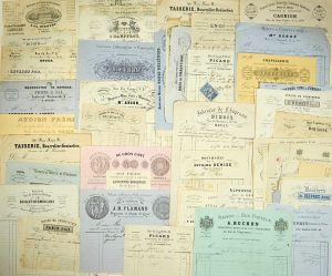─ « V. THUILLIER & BONNEFOND, teintures, Impression, Fournisseurs brevetés de sa Majesté l’Impératrice, 24 & 26 rue des Juifs Rouen 1870