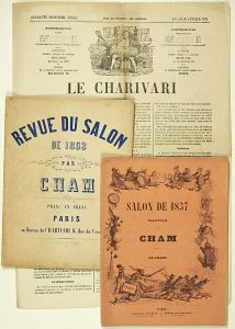 ─ « SALON DE 1857 illustré par CHAM. » Impr. Paris, librairie Nouvelle. Bureau du CHARIVARI ; 15pp in-4°.