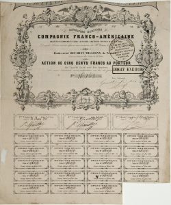 NAVIGATION MARITIME - COMPAGNIE FRANCO-AMÉRICAINE - ACTION de Cinq Cents francs au porteur - 1855 -