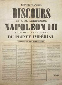 (NAISSANCE DU PRINCE IMPÉRIAL (NAPOLÉON IV) le 16 mars 1856. GERS) – « Discours de S. M. l’Empereur NAPOLÉON III à l’occasion de la naissance du PRINCE IMPÉRIAL – Empire Français –