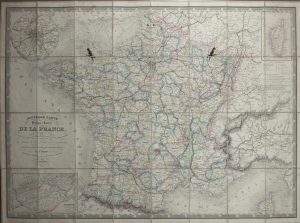 CARTE DE FRANCE & ALGÉRIE 1856. « Nouvelle Carte physique et routière de la France, indiquant toutes LES ROUTES DE POSTE, Royales et Départementales ; avec les distances comptées en kilomètres d’un lieu à un autre.