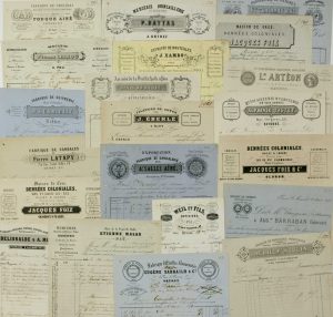 Beaux entêtes des Commerçants de la Ville de PAU (64), NAVARRENX (64), d’ORTHEZ (64), OLORON-STE-MARIE (64), BAYONNE (64), IGON (64), GARINDEIN (64).
