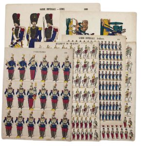 (MOSELLE) – 6 IMAGERIES DE LA GRANDE ARMÉE imprimées sous le Second Empire. - 3 Images de la Fabrique d’Estampes de GANGEL et P. DIDION à METZ :