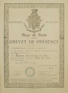 « Aucun Brevet ne pourra être délivré, s’il ne porte une date antérieure au dernier jour du Siège. La planche qui a servi à imprimer le présent Brevet sera détruite le jour de la délivrance de Paris. »