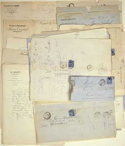 VOSGES. 85 Lettres et Factures adressées à « GARNIER THIEBAULT Frères », Manufacturier, Fabricant de Toiles à GÉRARDMER. De 1877 à 1897 - Oblitérations et timbres.