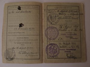situé et daté Venedig 26 August 1924, renouvellé les 26 august 1926, puis 1927 & 1929. Photo et signature d'Hermann Göring. Très nombreux cachets datés et timbres (Suède – Pologne – Autriche – Danemark – Turquie – Suisse dans les années 1924 – 1925 – 1927 & 1929).