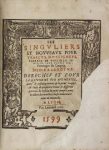 Le titre daté de 1599 est restauré avec manque sur le bordure, l'exemplaire, malgré un cahier mal placé est en tous points conforme à l'unique exemplaire conservé à la B.N.
