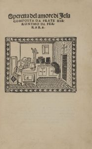 SAVONAROLE (Jérôme). - Operetta del amore di Jesu composta da frate Hieronymo da Ferrara. Florence : héritiers de Filippo Giunta, 1529. — In-4, 208 x 136 : (20 ff.).