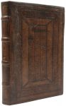 Veau brun, plats ornés d’un encadrement de filets et d’une roulette florale à froid, encadrant trois roulettes florales verticales au centre, dos à nerfs, tranches dorées (reliure de l’époque).