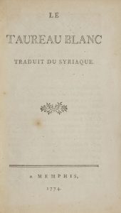 [VOLTAIRE]. - Le Taureau blanc, traduit du syriaque. Memphis [Paris], 1774. — In-8, 162 x 97 : LXIV pp.