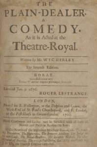 WYCHERLEY (William).The Plain-dealer. A Comedy. As it is Acted at the Theatre-Royal. The Sevents Edition. Londres : R. Wellington et E. Rumbal, 1700 . — In-4, 215 x 158 : (6 ff.), 83 pp.