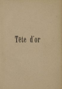CLAUDEL (Paul). - Tête d’or. Paris : Librairie de l’Art Indépendant, 1890. — In-8, 226 x 159 : (78 ff.), couverture imprimée.