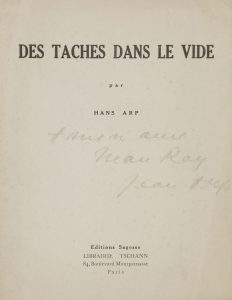 ARP (Jean). - Des taches dans le vide. Paris : Éditions Sagesse, librairie Tschann, [1937]. — In-8, 212 x 164 : (4 ff.).
