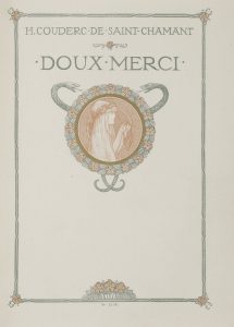COUDERC DE SAINT-CHAMANT (Henri). - Doux merci. Musique de A. Bachelet. Paris : [H. Couderc de Saint-Chamant], 1907. —In-8, 202 x 148 : (4 ff. premier blanc), VII, 10, XXVI pp., (3 ff. dernier blanc), 1 planche, couverture illustrée.