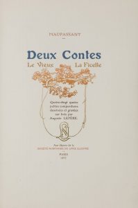 MAUPASSANT (Guy de). - Deux Contes. Le Vieux. La Ficelle. Paris : Aux dépens de la Société Normande du livre illustré, 1907. — In-8, 239 x 162 : 89 pp., (2 ff.), couverture illustrée.