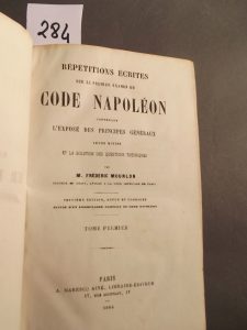 MOURLON (Frédéric) Répétitions écrites sur le premier examen du Code Napoléon, contenant l'exposé des principes généraux, leurs motifs et la solution des questions théoriques.