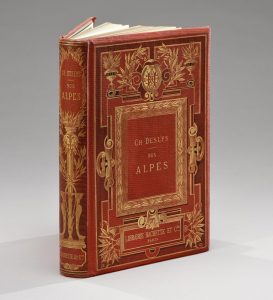 DESLYS (Ch.) - NOS ALPES. Le Muet de Brides - Légendes d'Évian - La Dent du Chat - Drumette. PARIS, HACHETTE, 1882. Un volume, in-8, de (2) ff., 312 pp., cartonnage éditeur habillé de percaline rouge recouvert d'un décor en noir et or...