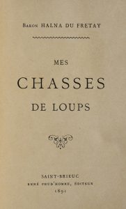 HALNA DU FRETAY (Baron) - MES CHASSES DE LOUPS. SAINT-BRIEUC, RENÉ PRUD'HOMME, 1891. Un volume, in-8, de 139 pp., (1) f., demi-reliure à coins moderne en chagrin brun.