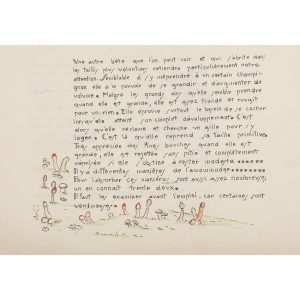 ♦ 17 ff. entièrement manuscrits sur papier Ingres, ORNÉS DE LARGES COMPOSITIONS AQUARELLÉES S’ENTRELAÇANT AVEC LE TEXTE.