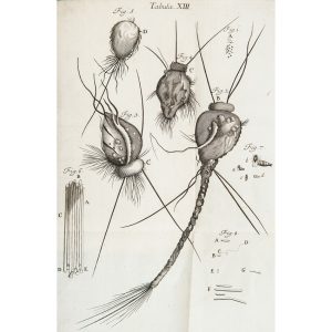 LE CLERC Daniel. Historia Naturalis et Medica Latorum Lumbricorum… Genève, Fratres de Tournes, 1715 ; in-4 de 16-456 pp., vélin ivoire, dos lisse, notes à l’encre sur le premier plat et au dos.