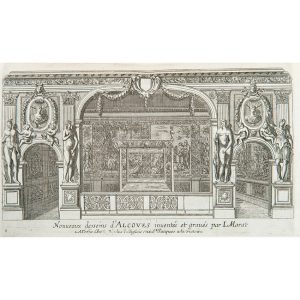 •Nouveaux desseins d’Alcoves inventés et gravés par Jean Marot. Paris, Nicolas Langlois, s. d. [ca. 1645]. Orné d’un titre gravé et de 7 planches.