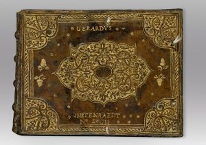L'inscription dorée sur le premier plat renvoie sans doute à Gerard van Imstenraedt, premier seigneur de Mheer, village du Limbourg néerlandais près de Maastricht.