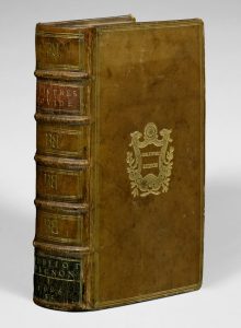 Veau blond, dos à nerfs orné de caissons de filets dorés contenant un double B doré, pièces de titre et de bibliothèque en maroquin rouge et vert, triple filet doré encadrant les plats avec écusson doré au centre portant “Bibliothec Bignon” surmonté d'un soleil, tranches rouges (reliure de la fin du XVIIe siècle).