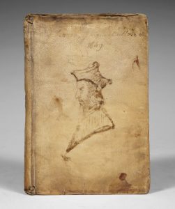♦ Portrait de Nostradamus dessiné à l'époque à l'encre sur le premier plat de la reliure.