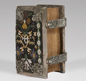 ► Remarquable reliure brodée, probablement alsacienne, réalisée en perles de verre, avec écoinçons et fermoirs en argent.
