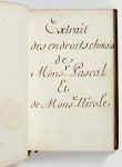 [PASCAL (Blaise)] - Extrait des endroits choisis de Monsr Pascal et de Monsr Nicole. Sans lieu ni date [fin du XVIIe siècle é] Manuscrit in-12 [156 x 98 mm] de (1) f. de titre, 159 ff. :