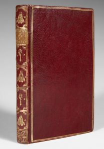 Maroquin rouge, dos lisse orné d'une alternance de tiare et de crosse d'évêque dorées, pièce de titre de maroquin citron, double filet doré encadrant les plats, filet doré sur les coupes, tranches dorées sur marbrures (reliure de l' époque).