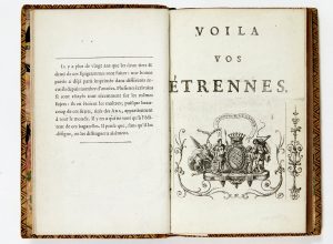 Exemplaire également enrichi par l'auteur de deux feuillets insérés en tête: un premier portant l'inscription imprimée “Voilà vos étrennes” et les armoiries gravées de Mérard de Saint-Just; un second portant son spirituel portrait gravé par Lebeau.