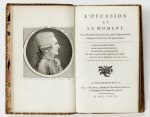 L'Occasion et le Moment. Par un amateur sans prétention, qui n'est pas méchant, mais qui croit le rire bon pour la santé. A Bonhomiopolis, chez l'Ingénu, libraire de l'académie des Quatre, à l'enseigne de la harpe bien pincée [Paris, P. Didot l'aîné, pour l'auteur], 1782.