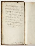 “Je soussigné professeur d'accouchement à l' école de médecine de Paris chirurgien accoucheur en chef, et professeur, de l' hospice de la maternité certifie que Mlle Anne Bonnecaze de Francescas département du Lot et Garonne, a obtenu ce livre comme prix d' émulation et d'encouragement, d'après un examen publié le six Messidor an onze dans l' hospice même de la maternité; en fait de quoi je lui ai délivré ce témoignage, comme un hommage rendu à la verité. Paris, ce 12 Messidor an onze, Baudelocque.”