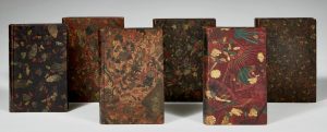 THEURIET (André) - Réunion de six ouvrages. 1891-1900. 6 volumes in-12 [environ 190 x 134 mm] : cuirs japonisants en couleur à la Bradel, dos lisses, couvertures conservées (reliures de l' époque).