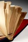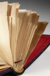 “Cette reliure a été faite avec ma culotte de chasseur; les trous sont... faits par les éclats d'obus lorsque je fus blessé en 1915.”