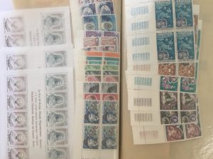 timbres-poste (nombreux blocs de 4), blocs, sans charnière entre les années 1969/1974 environ, dans un classeur de feuilles.