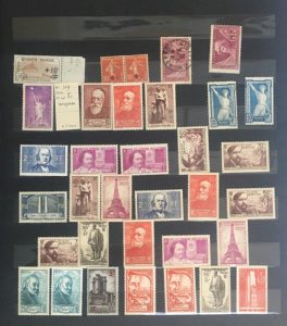 timbres-poste neufs (dont multiples) entre les années 1930/1980 approx. dans un classeur.
