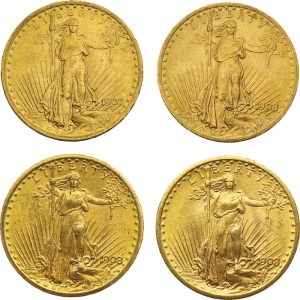 4 monnaies de 20 dollars