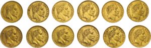 Napoléon III laurée 2 x 1862 A, 1862 BB, 2 x 1864 A, 1865 A, 1865 BB, 1867 A, 1868 A, 1868 BB, 1869 BB, 1870 BB.