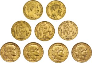 Napoléon III 1855 A, 1856 A. Génie 1878 A, 1879 A, 1896 A, et Marianne 1905, 1907, 1908 (2 ex.). L’ensemble TTB